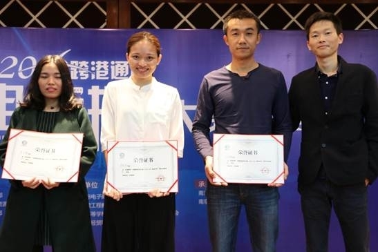 三等奖获得者唐传鑫(左一)、李晓岚(左二)、孙鸿锋(右二)