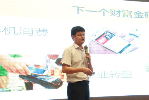 中国国际电子商务中心副主任张大明为金奖获得者严杰颁奖