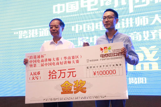 经过大赛评审委员会的最终评选,严杰获得金奖,彭日升和莫川川获得银奖,吴莹、陈志钦、刘晓梓获得铜奖。由中国国际电子商务中心副主任张大明、揭阳市政府副市长林丽娇等领导为获奖选手颁发奖金证书。