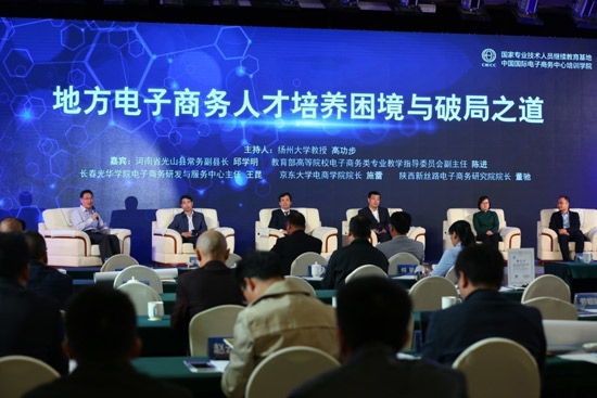 专家聘任仪式和大赛新闻发布会结束后,中心还组织召开了国家电子商务人才培养模式创新研讨会,教育部高等院校电子商务类专业教学指导委员会副主任陈进教授、清华大学博士后王吉斌、德国电子商务协会主席Oliver Prothmann、扬州大学高功步教授、京东大学电商学院院长施蕾、贵州电商云有限公司余娟等专家先后进行了主题演讲和圆桌研讨。