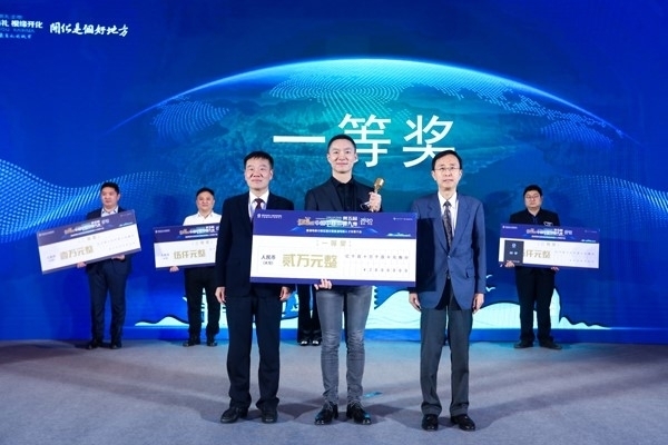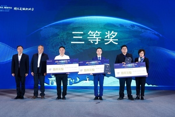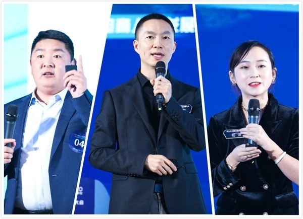 衢州市商务局副局长陈晶、开化县经济和信息化局局长廖继军、卡游科技董事长李奇斌为荣获优秀奖的选手颁奖