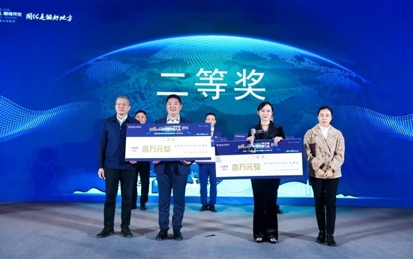 商务部驻杭州特派员办事处副特派员周关超、衢州市商务局局长林静为荣获二等奖的选手颁奖